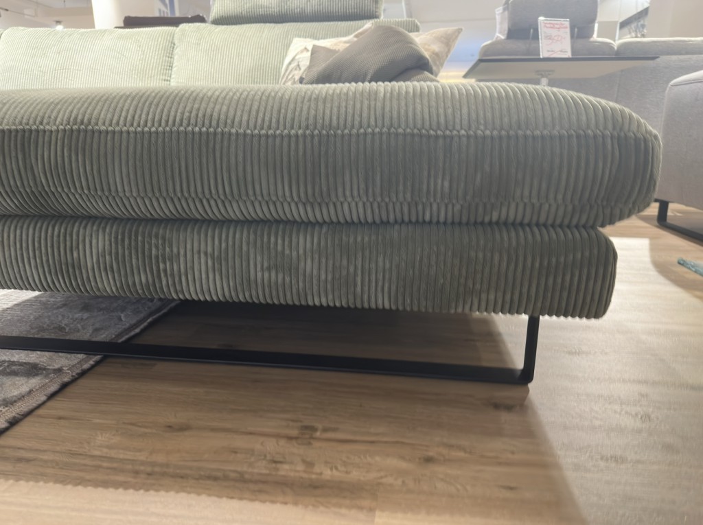 Stoff: Cord turtleMetallkufe schwarz mattincl. 1x Kopfstütze2-Sitzer Armlehne linksLongchair Armlehne rechtsSitztiefe 58 cmSitzhöhe 44 cmHöhe 84 cmTiefe 104 cmStellmaß: 322 x 183 cm