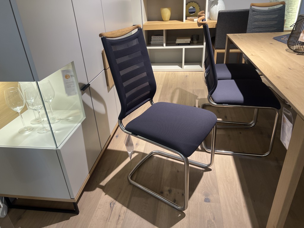 6x Stuhl LILLIBezug TriTex basalt/ Rücken TriTex basaltGestell EdelstahloptikKopfstück Eiche geölt2x Schwingstuhl LILLI PLUSBezug Melange stoneGestell EdelstahloptikKopfstück Wildeiche geöltzum Abholpreis