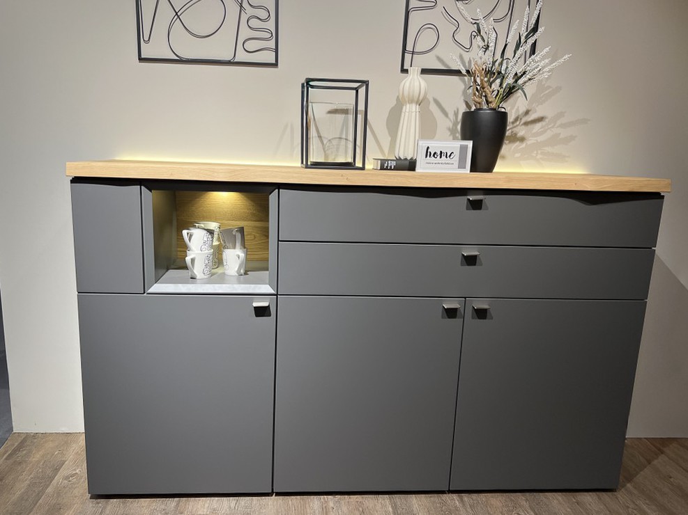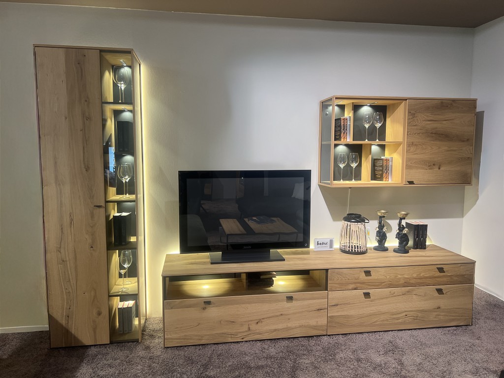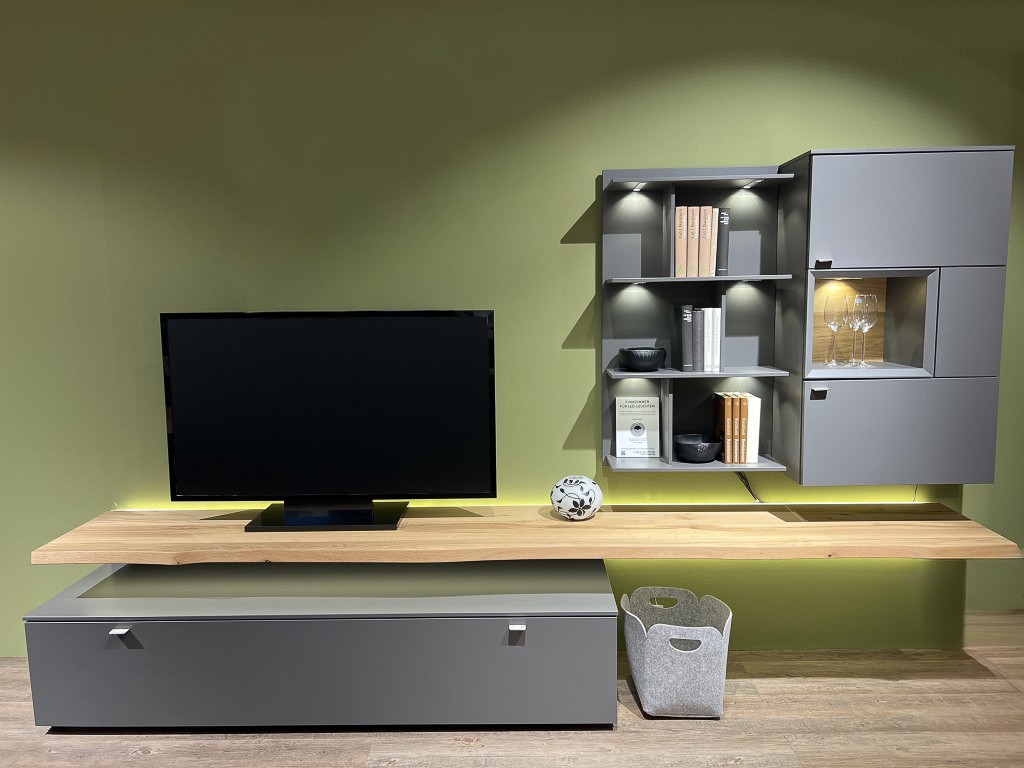 Wohnwand- Kombination Lack schiefergrau/ Eiche geölt